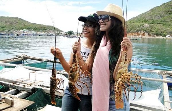 tour du lịch để vừa đi thuyền ra bãi tắm vừa có thể ăn uống no say. Tôm thì ở đây có tôm hùm và tôm xanh, mỗi loại có 2 mức giá là